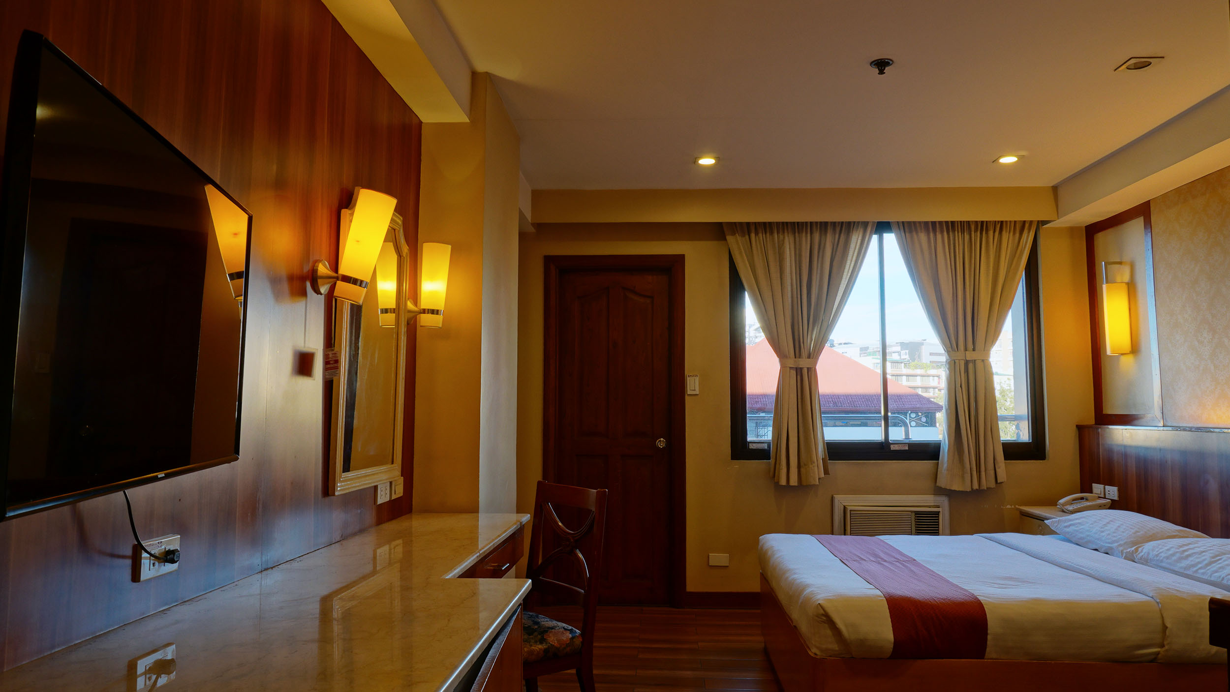 - Amenities: Air-Conditioning, Free Wi-Fi, Hair Dryer, Perculator, Refrigerator, Safe, Shower, TV