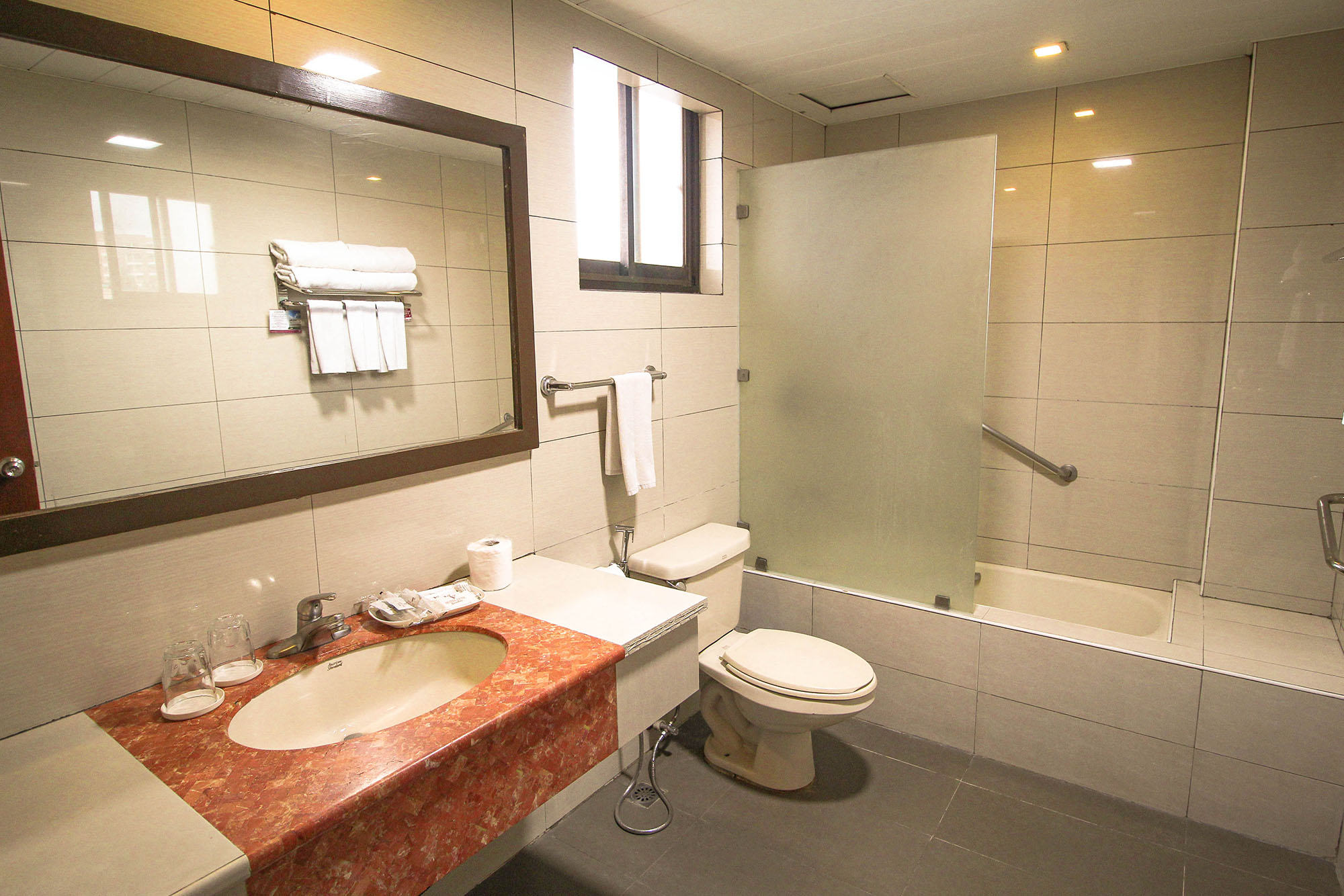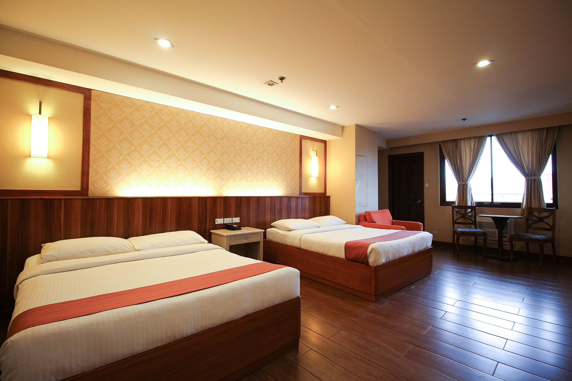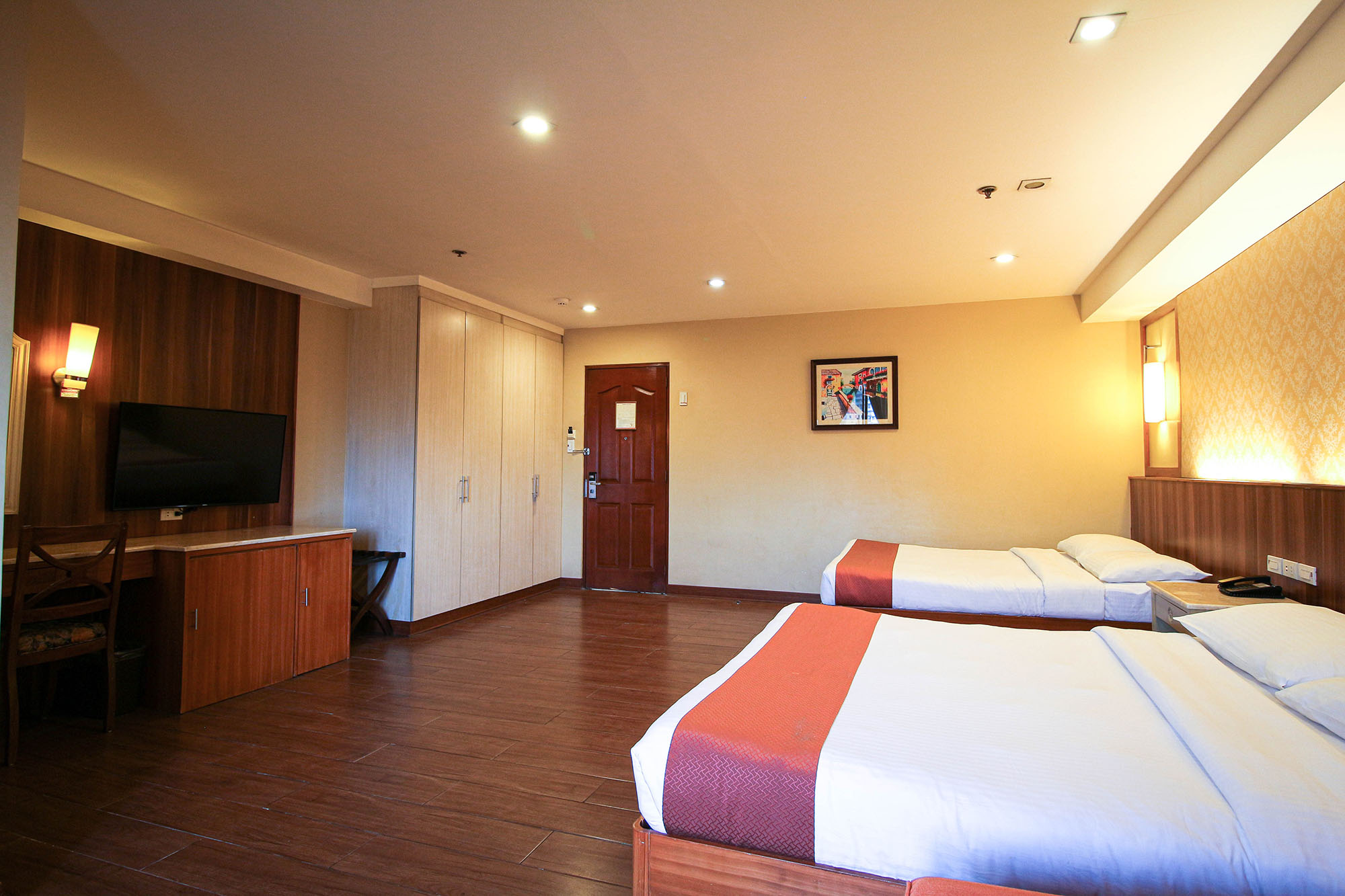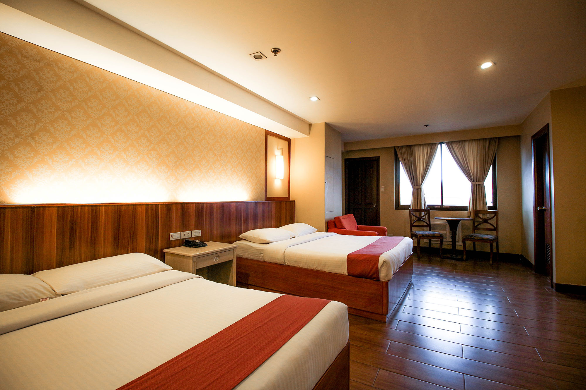The Family Suite Room has a bigger floor area compared to the regular Family Rooms. It has two queen-sized beds with a bath tub and balcony overlooking the city.