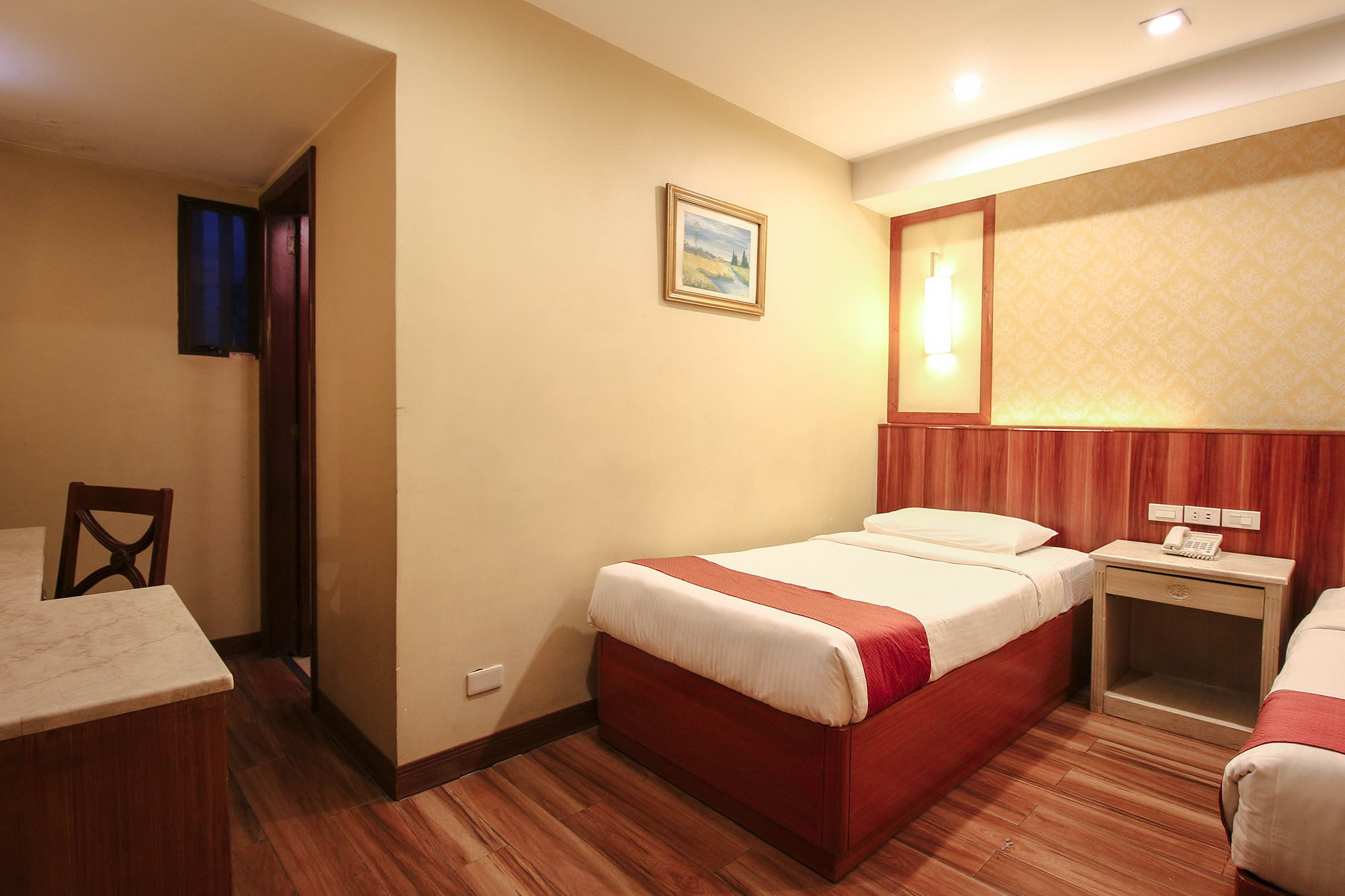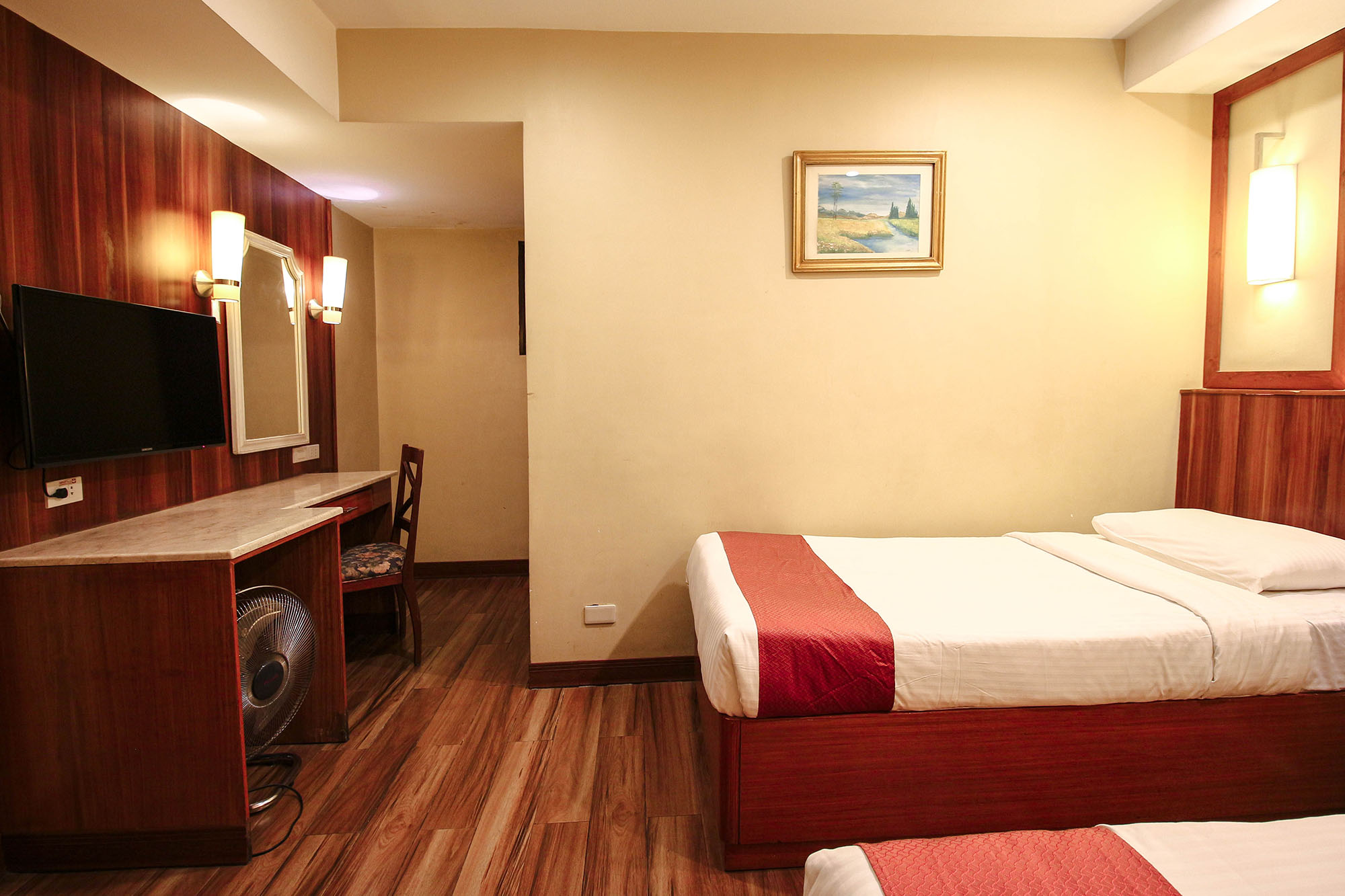 Have a relaxing sleep with our junior standard room equipped with a stand fan with two single beds with a private bath complete with amenities. No window, No AirconĀ